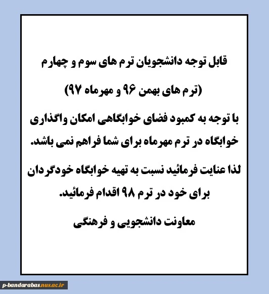 قابل توجه دانشجویان ترم های سوم و چهارم