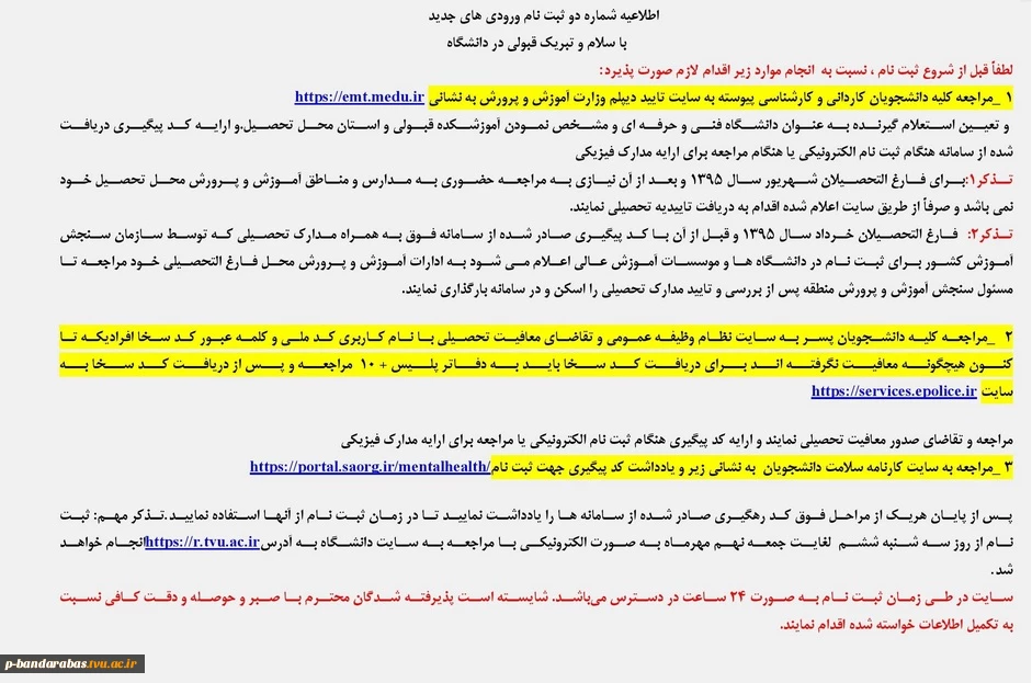 اطلاعیه شماره دو ثبت نام ورودی جدید 2
