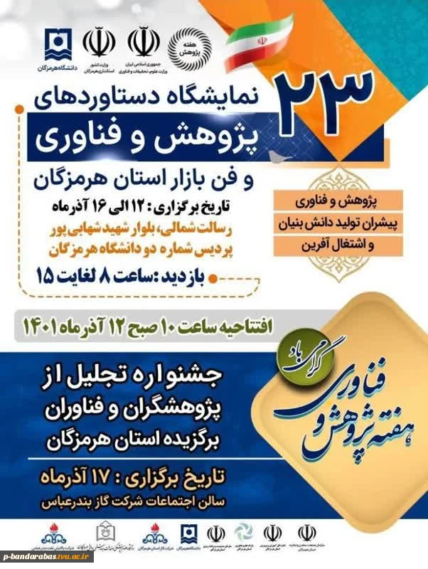 امتیاز دهید : نمایشگاه دستاوردهای پژوهش و فناوری به مناسبت هفته پژوهش و فناوری 2 جمعه 11 آذر 1401 ساعت 15:34