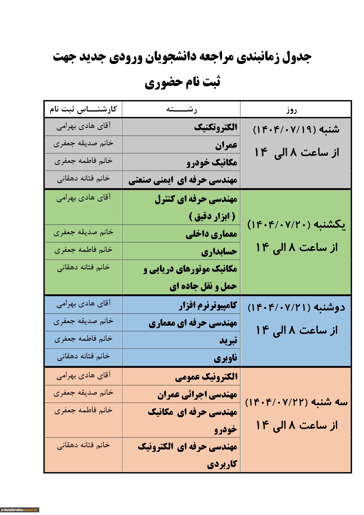 امتیاز دهید : جدول زمانبندی مراجعه دانشجویان ورودی جدید جهت ثبت نام حضوری (1)_page-0001 (1) چهارشنبه 16 مهر 1404 ساعت 7:23
